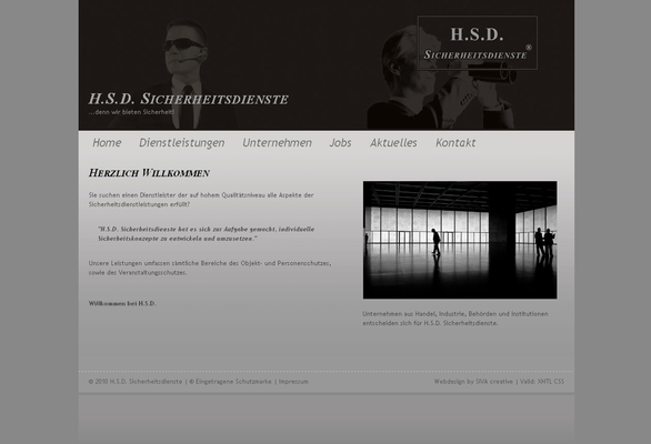 WebdesignMit nun fast zwei Jahrzehnten Erfahrung und Erfolg im Bereich Objekt-, Personen- und Veranstaltungs- Schutz bietet H.S.D. Sicherheitsdienste Privatpersonen und Unternehmen jeder Größe intelligente Sicherheitslösungen zum Schutz vor Bedrohungen, wie z. B. vor Vandalismus, Diebstahl, Körperverletzung oder Schußwaffengebrauch.